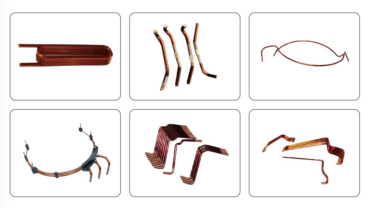 第二招:【專用工裝+精準(zhǔn)剝漆,破解精度難題】 針對(duì)漆包線特性設(shè)計(jì)的專用成型卷曲工裝,輕柔呵護(hù)線材表面,最大限度減少對(duì)漆包線絕緣表面的壓傷、刮傷,確保線圈絕緣性能完好無(wú)損。獨(dú)立控制的剝漆系統(tǒng),深度長(zhǎng)度精準(zhǔn)可調(diào),確保每一次折彎和剝漆都分毫不差;